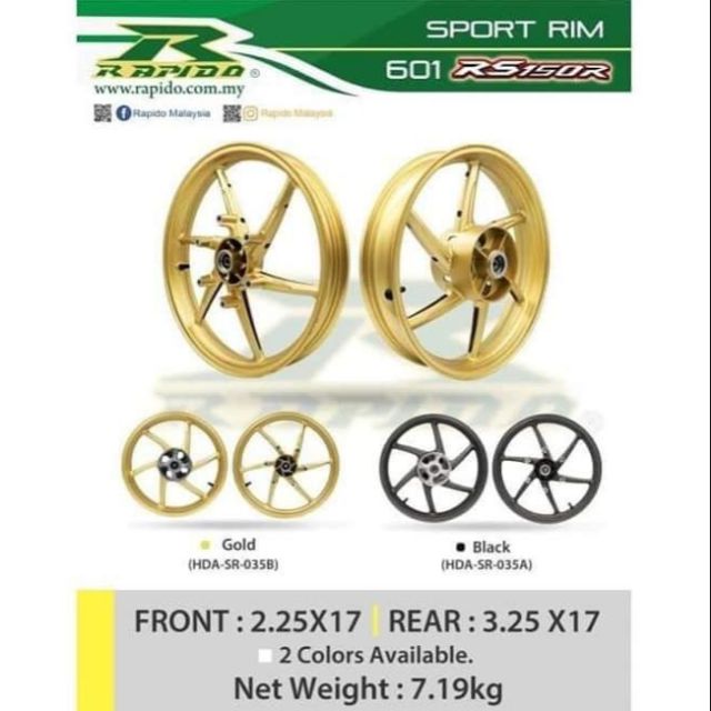 Rapido 601 Sport Rim For Honda Rs150r Saiz Lebar Shopee Malaysia